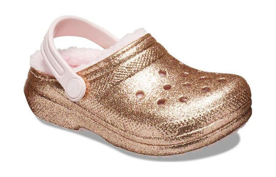 Crocs (GS) Classic Lined Glitter Clogs “Gold Pink” 207462-2UB