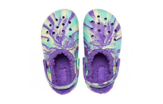 (GS) Crocs Classic Lined Marbled Clogs ‘Neon Purple Multi’ 207238-573