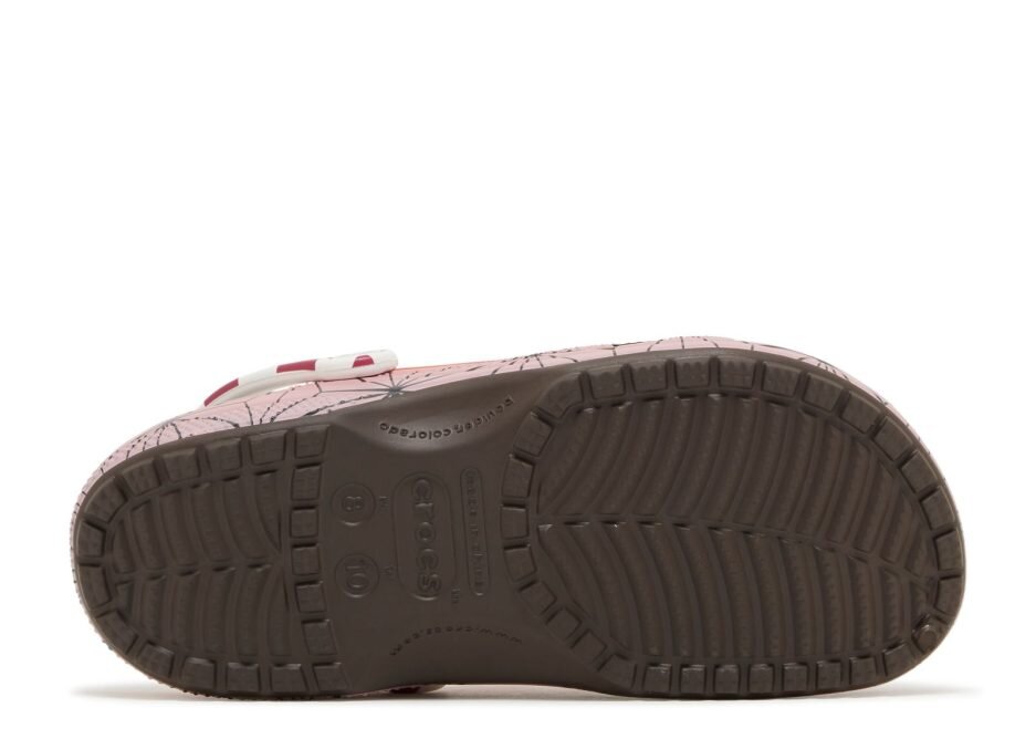 The Demon Slayer x Crocs Classic Clog ‘Nezuko’ brings a pink foam upper with geometric black lines. Nezuko Kamado’s checkerboard sash is brought to life on the swiveling heel strap, while her bamboo muzzle wraps over the top of the upper. Vent ports give these slip-ons their signature look while a contoured footbed marked with the Demon Slayer logo provides a comfortable feel. Custom Jibbitz charms like Nezuko’s pink bow and wooden box let you customize the look.