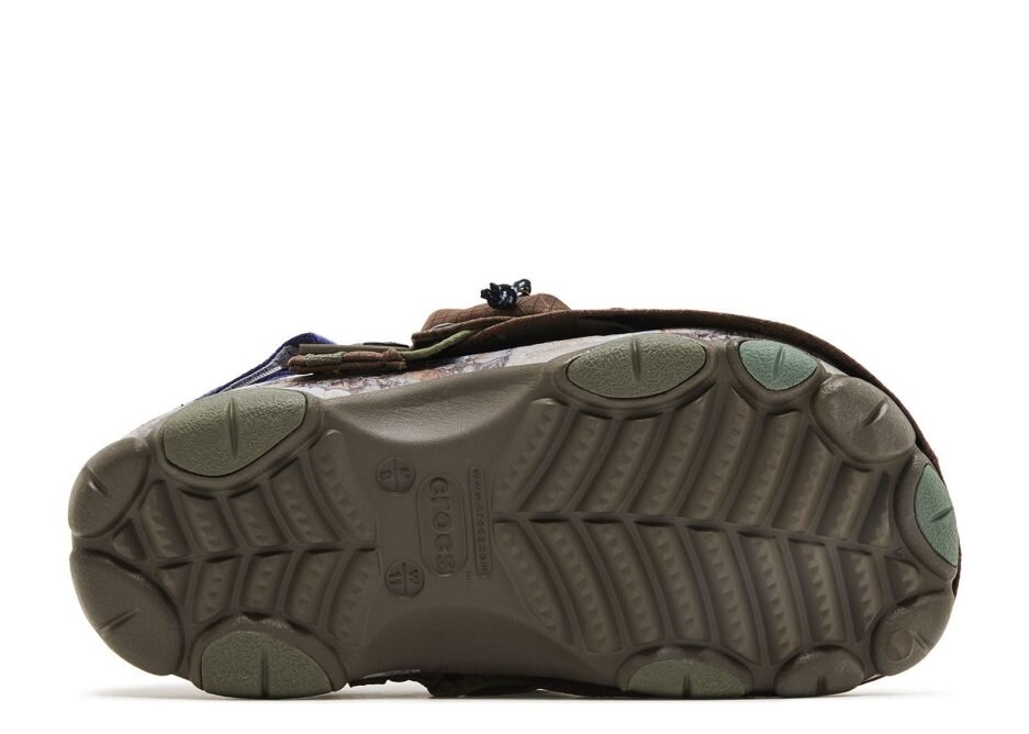 The Bodega x Crocs All-Terrain Clog 2.0 NICT-TECH ‘Off the Beaten Path’ sports a lightweight foam upper wrapped in a woodland bark camo print. A removable brown ripstop sheath, secured with a toggle closure and contained within a zippered pouch, wraps around the upper to help keep you dry. An adjustable turbo heel strap brings a comfortable feel, while lugs on the rubber outsole keep you surefooted in any terrain.