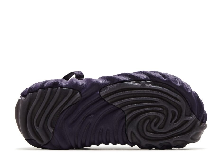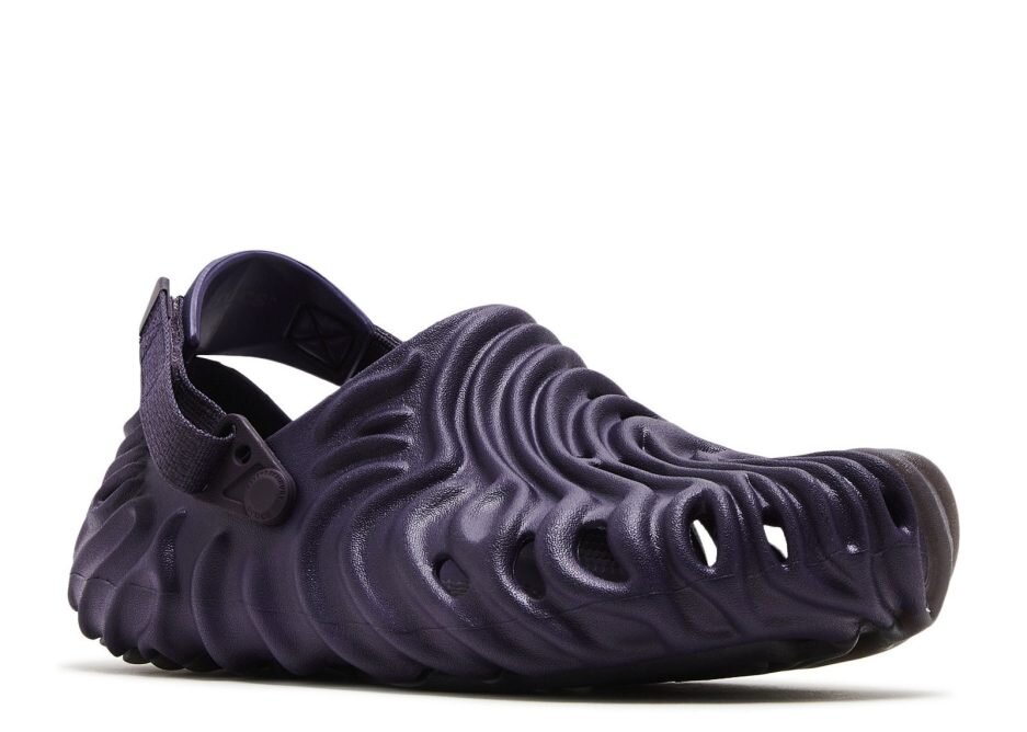 The Salehe Bembury x Crocs Pollex Clog ‘Ube’ has a molded foam upper with concave ridges modeled after Bembury’s fingerprint design. Vent ports keep every step airy, while an adjustable nylon heel strap locks down the fit. Swirling ridges on the outsole provide smooth traction underfoot.