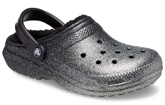 Crocs Classic Glitter Lined Clogs ‘Black Silver’ 205842-067