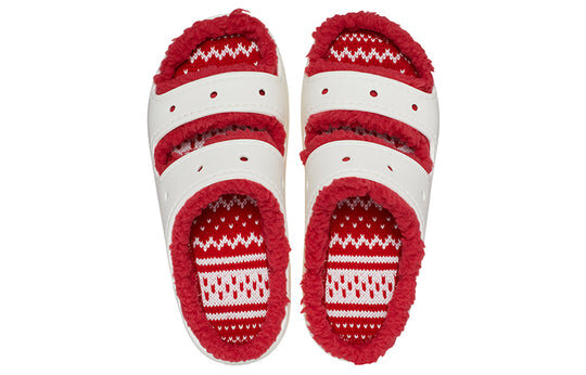 (WMNS) Crocs Classic Cozzzy Holiday Sweater Sandal ‘White Red’ 209227-90H